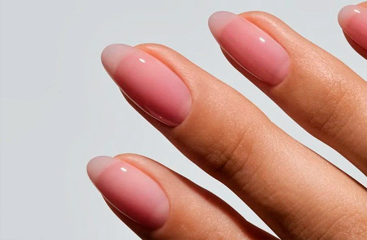 Después se aplica un esmalte translúcido o ligeramente rosado que aporte luminosidad sin cubrir completamente la uña natural. El acabado final suele ser muy brillante, lo que refuerza esa sensación de limpieza y frescura.